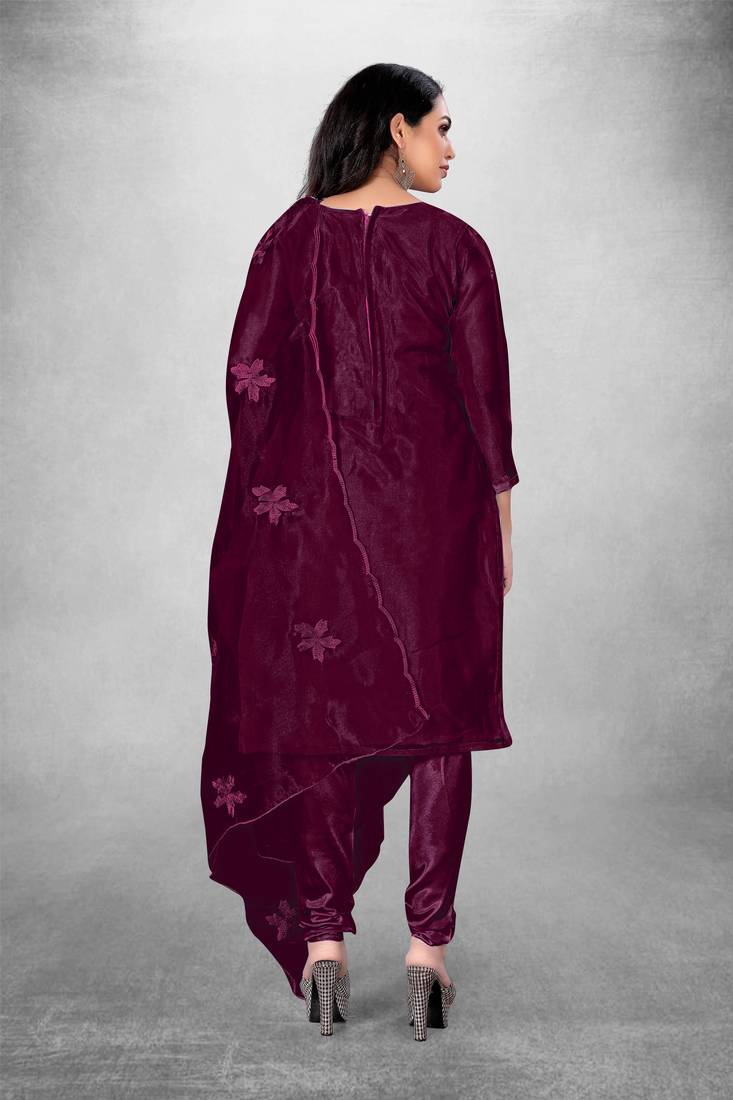 Women's organza silk embroidery unstitched dress material