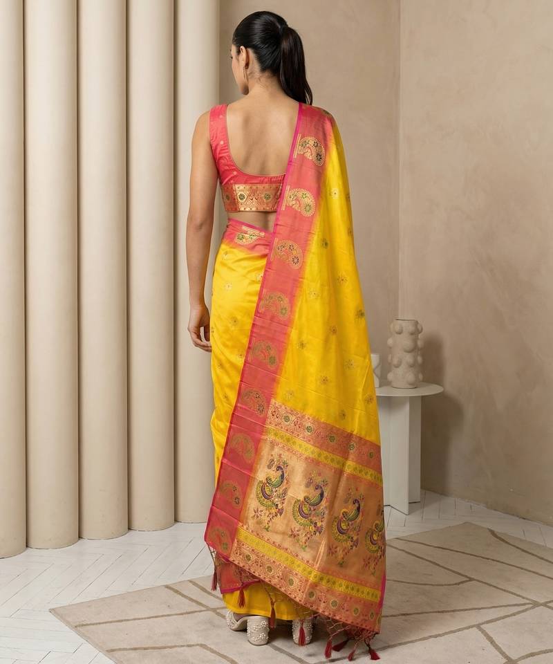 | • | Saree | : | Color- Yellow / Fabric- Paithani Silk |