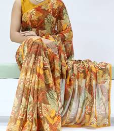 Mustard georgette saree with floral lace-unstitched