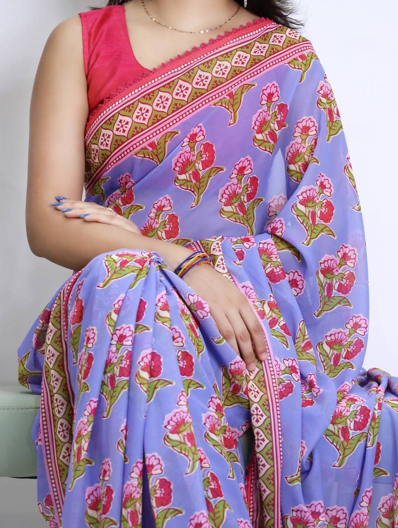 | Product Name | Purple Color All Over Floral Printed With Premium Lace Border Weightless Saree With Unstitched Blouse | |