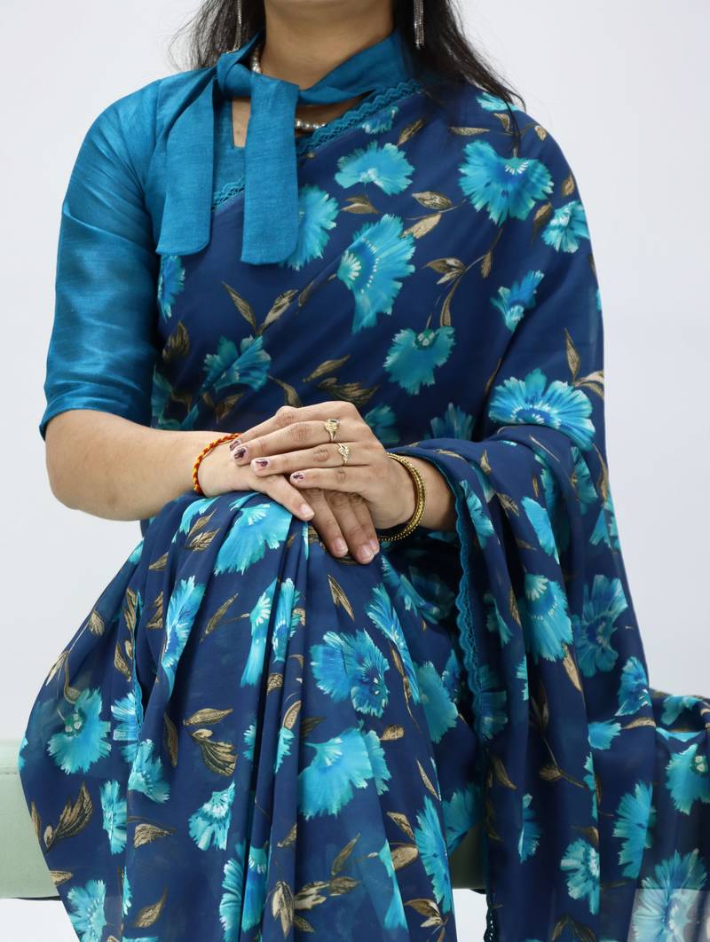 | Product Name | Sky Blue Georgette Saree With Floral Lace Unstitched | |