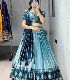 | Product Name | Sky Color Zari Weaving Work Kanchipuram Silk Pattu Lehenga Choli With Unstitched Blouse | |
