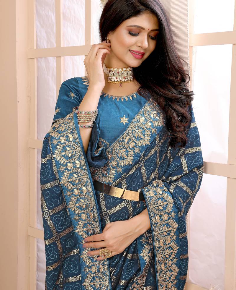 | Product Name | Blue Bandhani Printed Vichitra Silk Saree With Embroidered Border | |