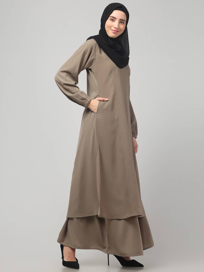 Two pieces abaya dress with elasticated sleeves - knee length burqa for women and girls