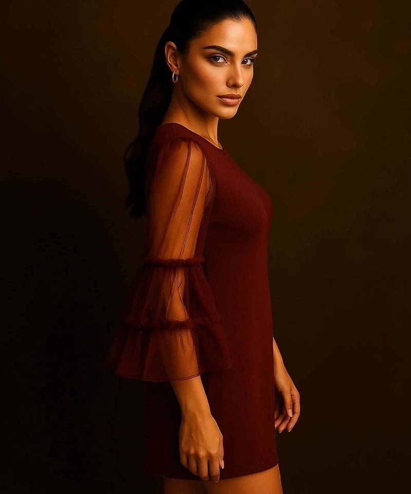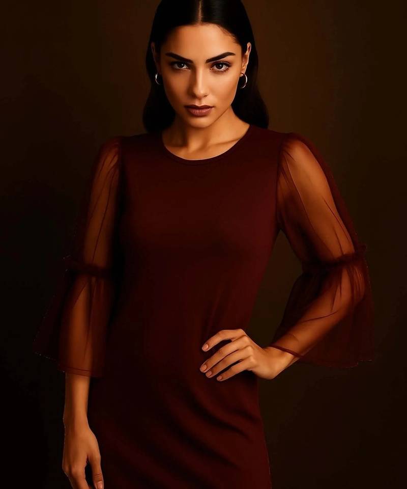 | Product Name | Maroon Sheer Sleeve Dress | |