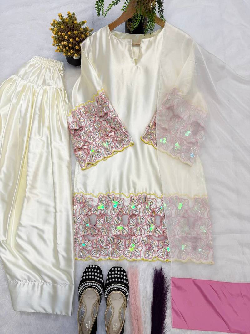 | Product Name | Designer Ivory Kurta Palazzo Set With Pink Floral Lace Work | |