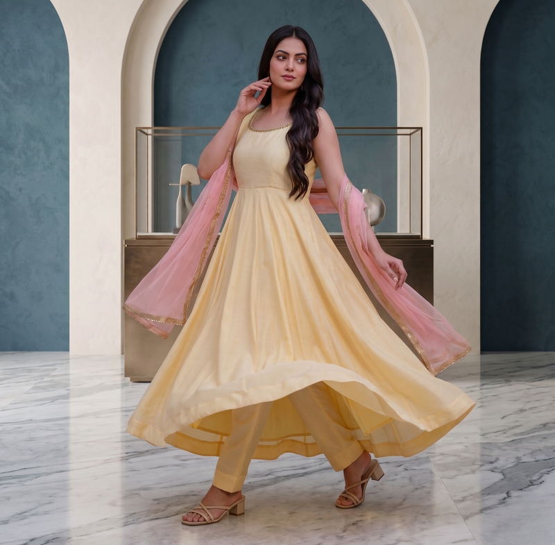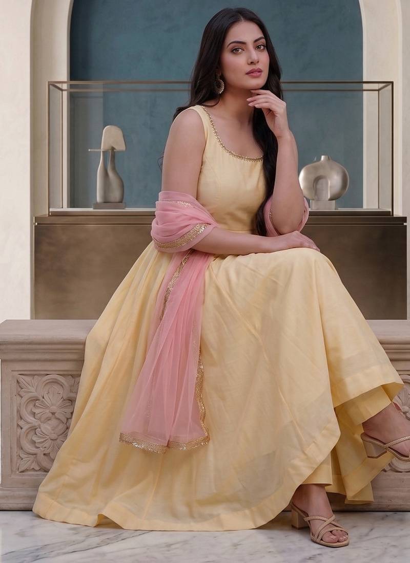 | Product Name | Elegant Pastel Yellow Anarkali Dress With Soft Pink Dupatta | |