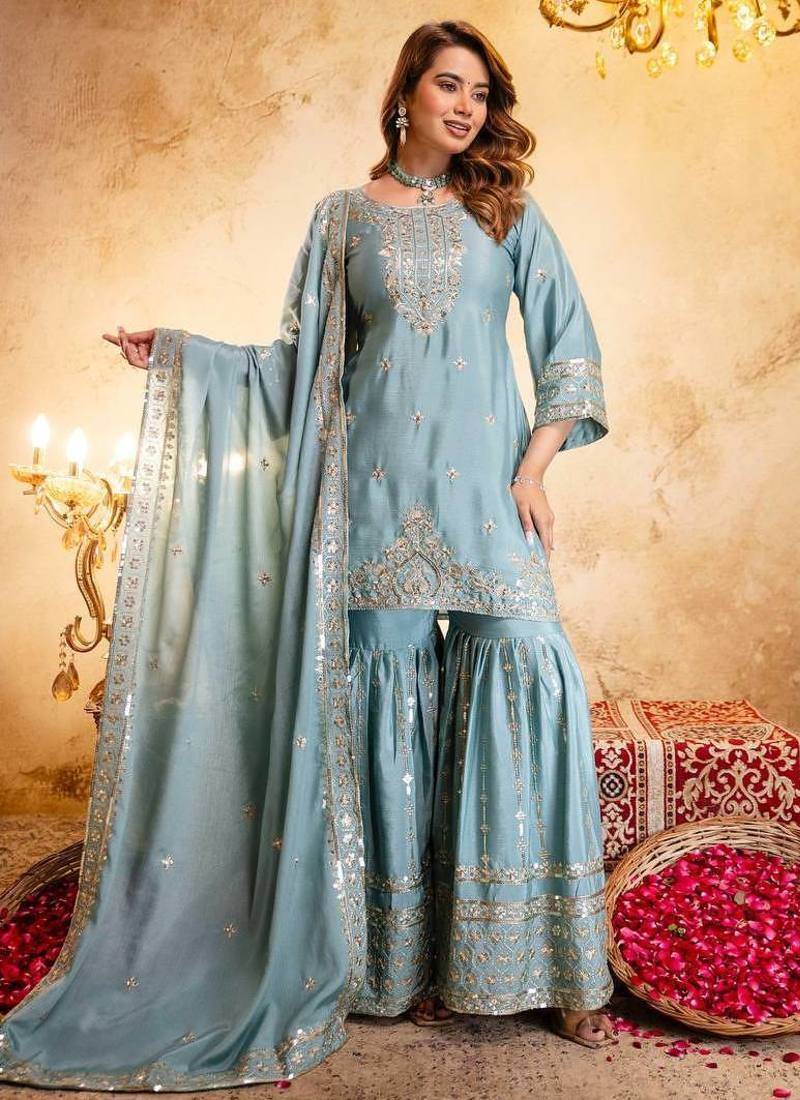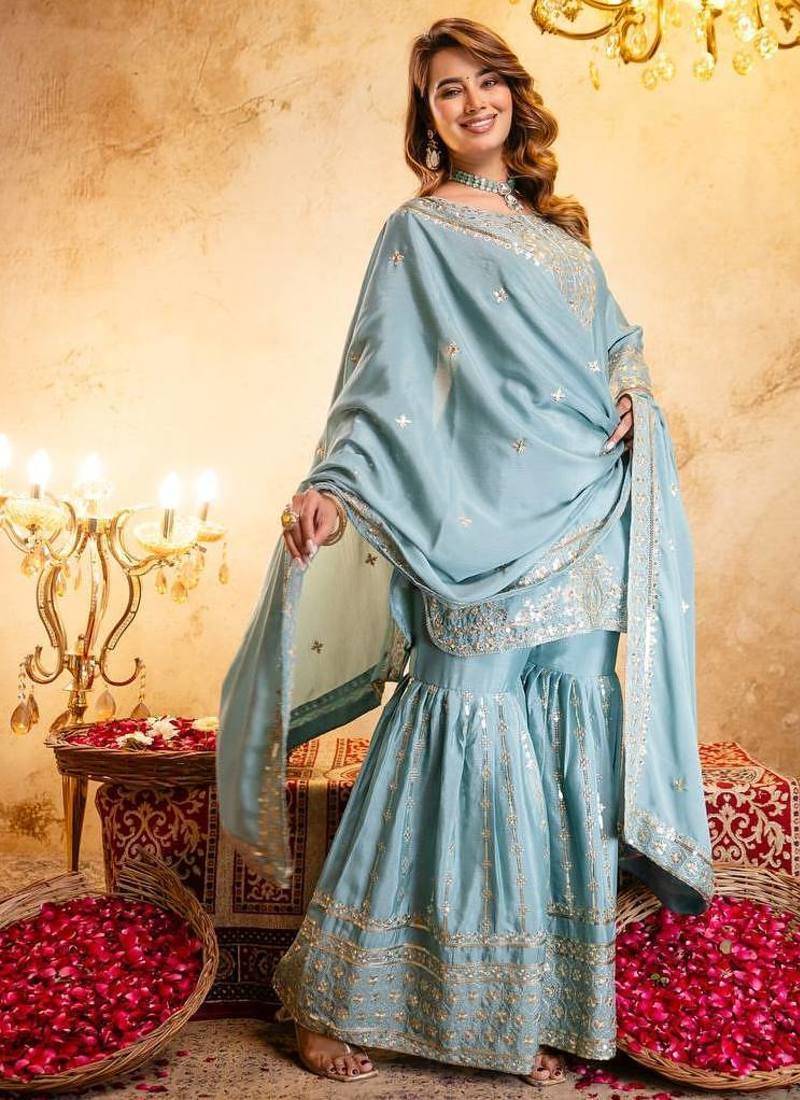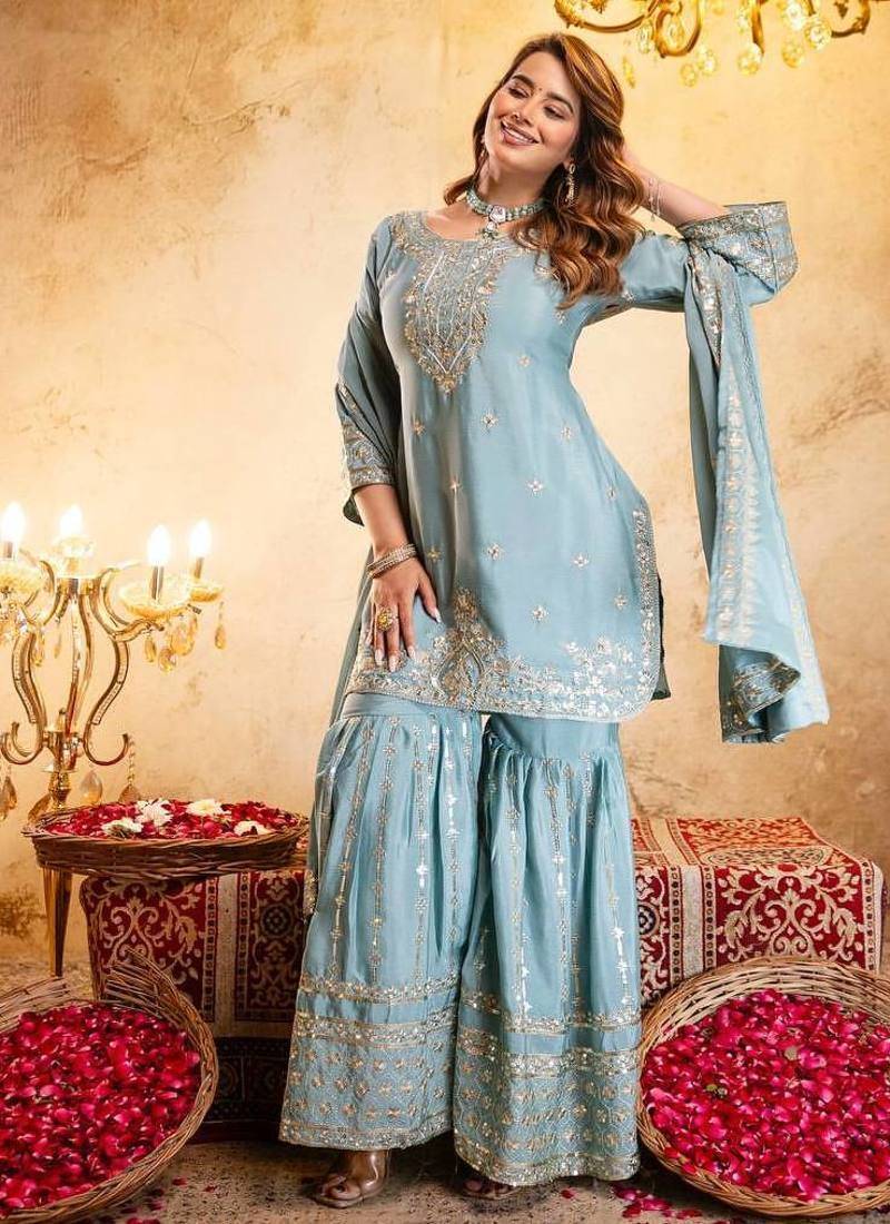| Product Name | Elegant Sky Blue Embroidered Sharara Set With Dupatta | |
