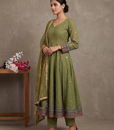 Parrot-green vichitra silk with embroidery salwar suit stitched