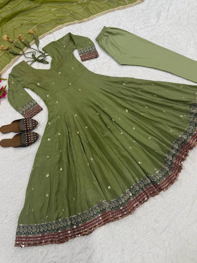 | Product Description | 💃*Anarkali Fabric :* Heavy Nc Vichitra Silk With 5mm Sequence And Embroidery Work