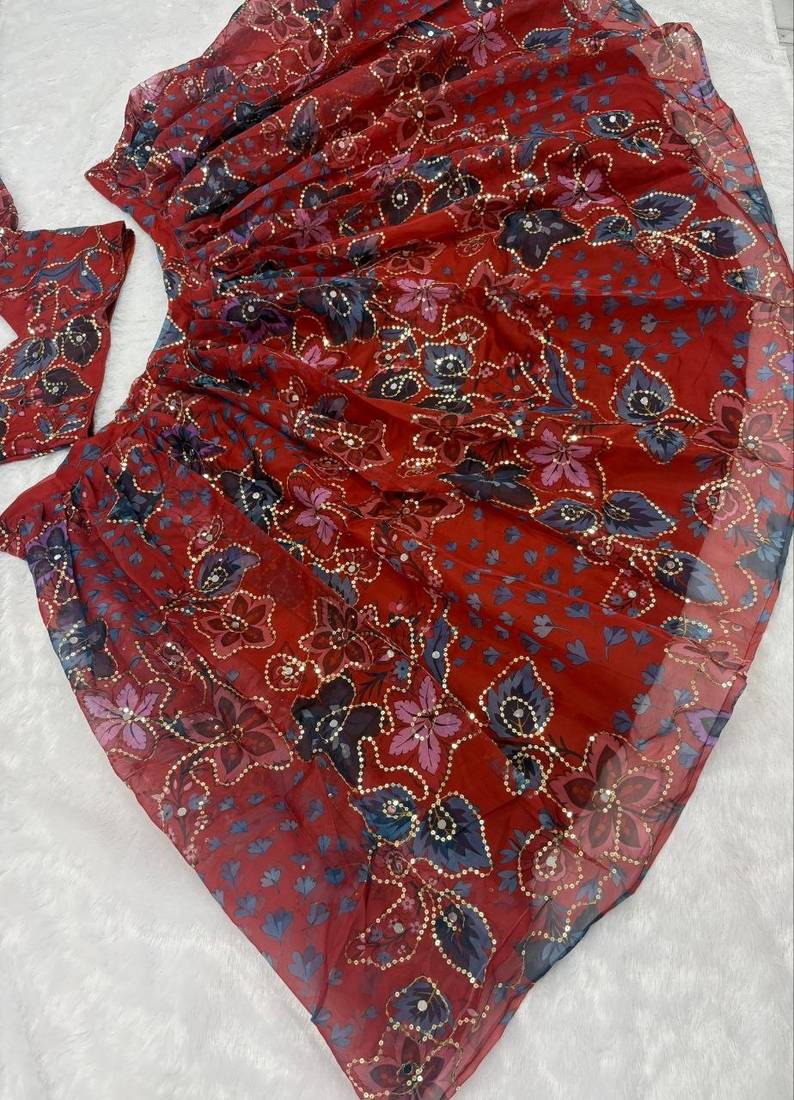 *With Heavy Cancan With Double Inner Covering* Blouse : *Premium Taby Silk Embellished With Beautiful Print With Embroidery Sequins Work Beautiful Hand Real Mirror Work*( Unstitched Fabric ) Dupatta : *Premium Taby Silk With Beautiful Print With Beautiful Embroidery Sequins Work Hand Real Mirror Work With Beautiful Multicolour Work Lace Border Work*( 2.5 Mtr ) *Size Details*