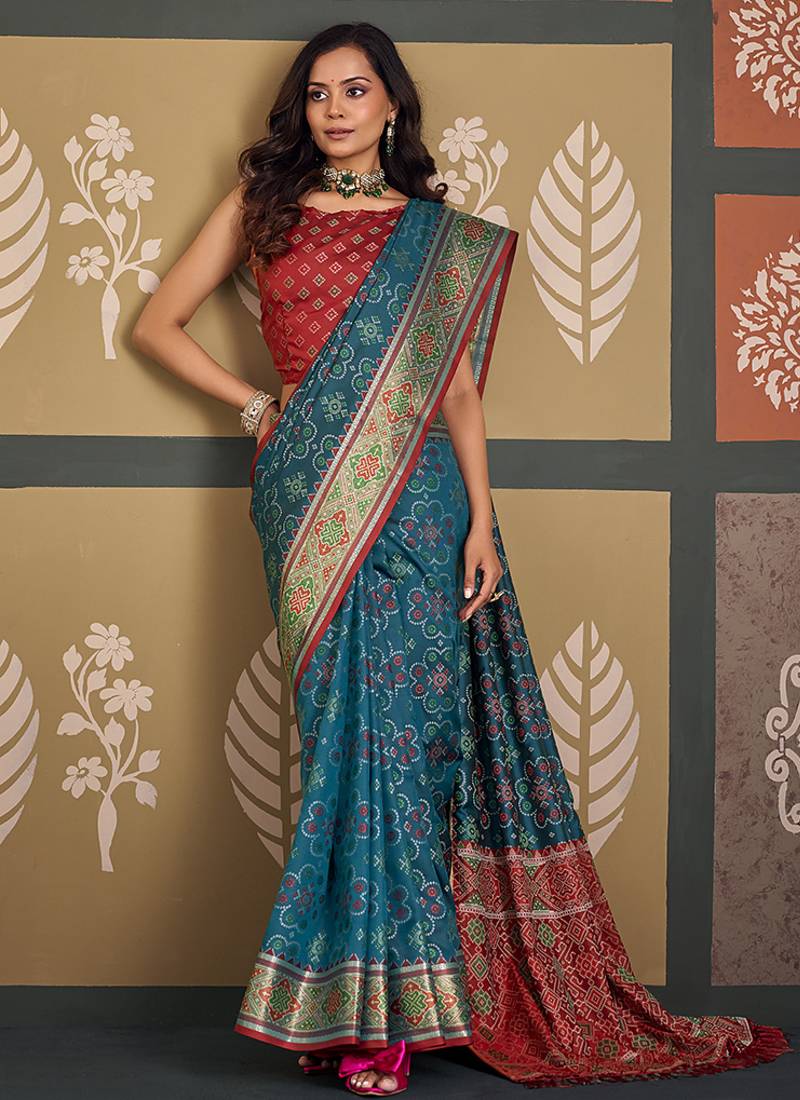 Teal patola silk party wear saree