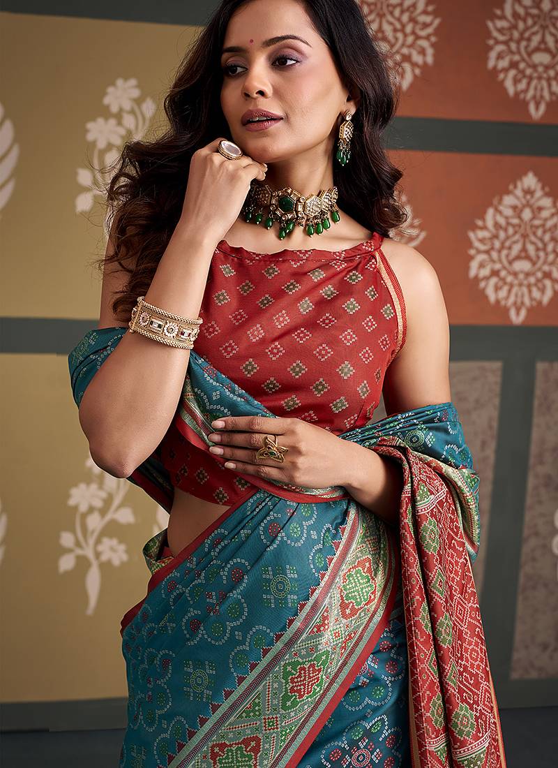 | Product Name | Teal Patola Silk Party Wear Saree | |