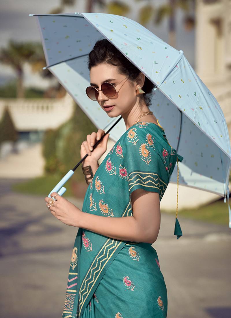 | • | Saree | : | Color- Turquoise / Fabric- Cotton Silk |