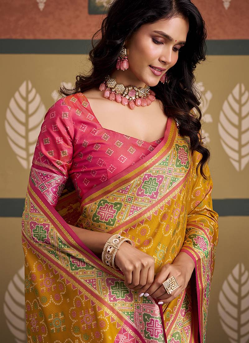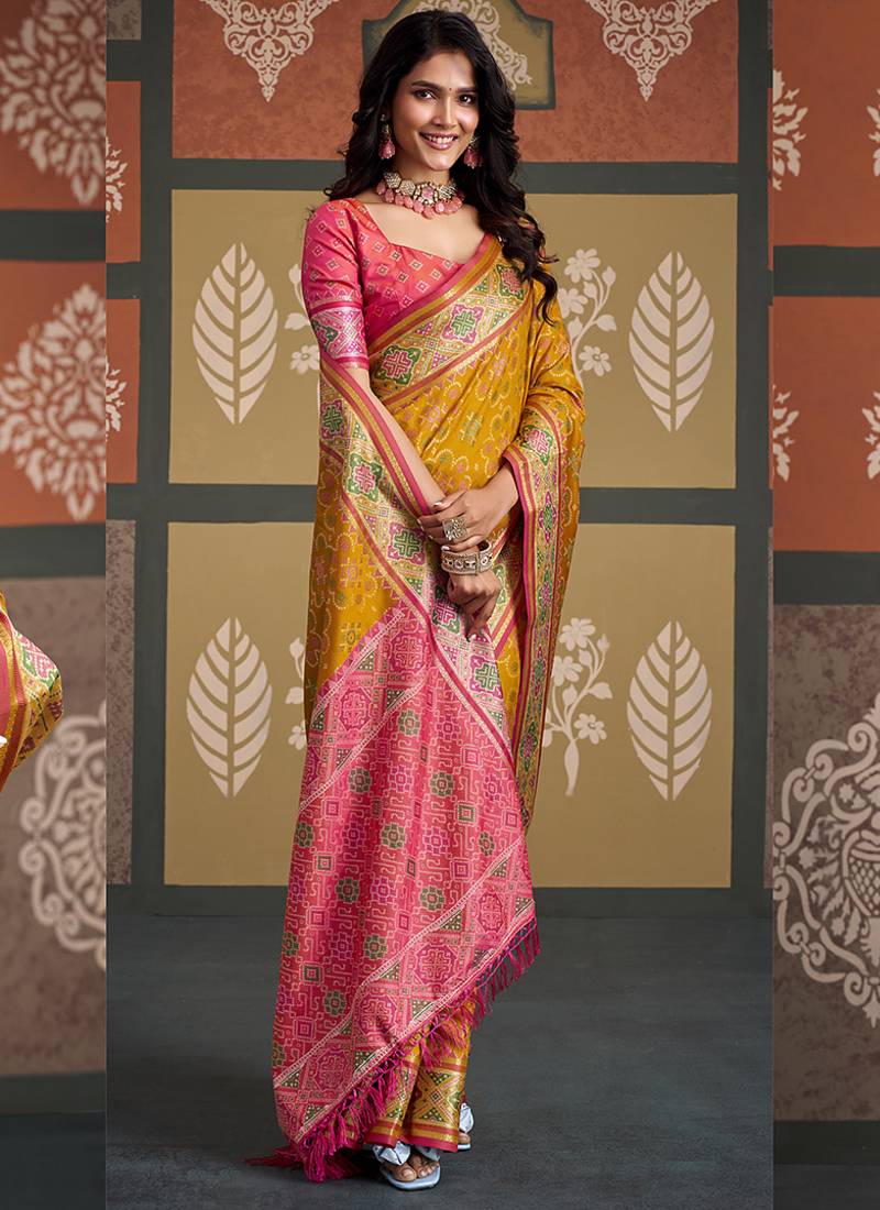Yellow patola silk party wear saree