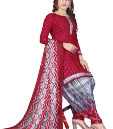 Unstitched printed crepe kurta & patiyala dress material with top, bottom & dupatta