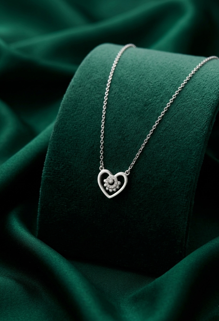| Product Name | 925 Sterling Silver Heart Pendant Necklace With Floral Sparkle Design For Women | |