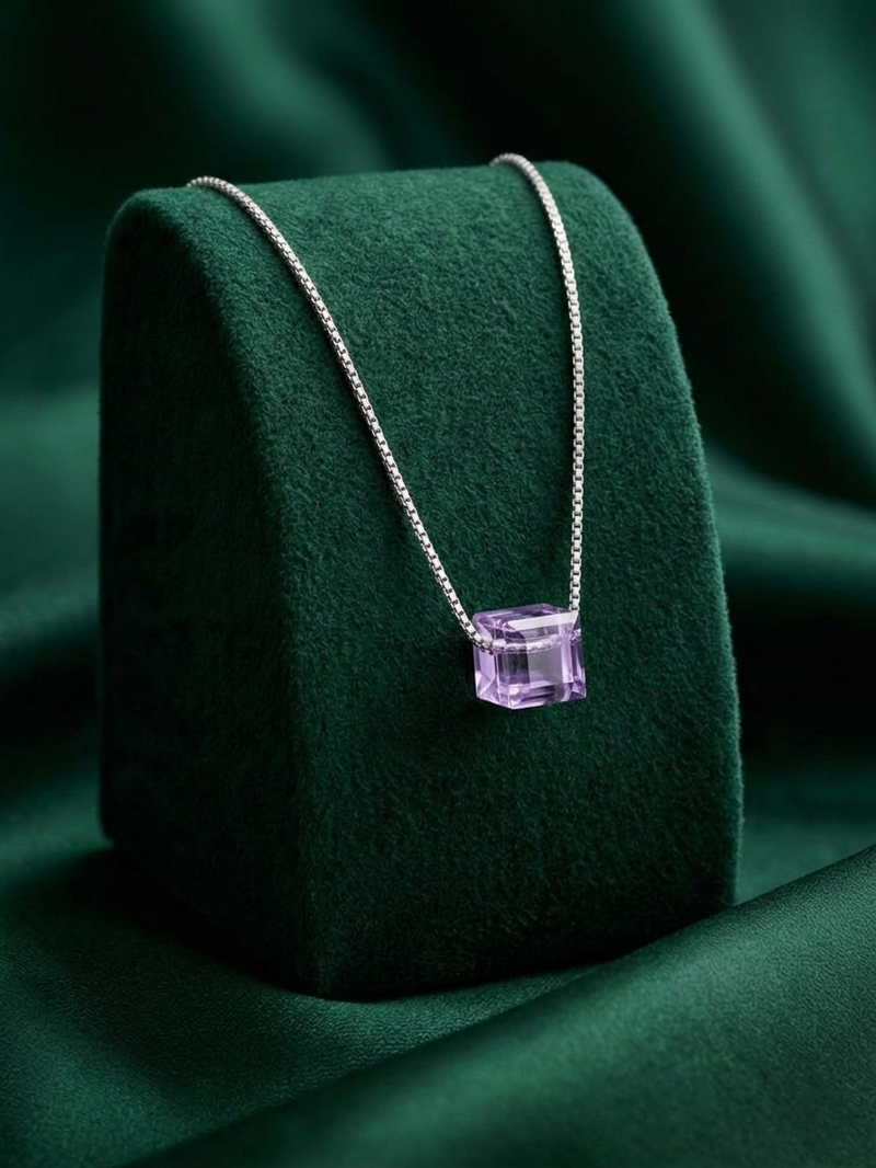 | Product Name | 925 Sterling Silver Minimalist Purple Stone Cube Pendant Necklace For Women | |