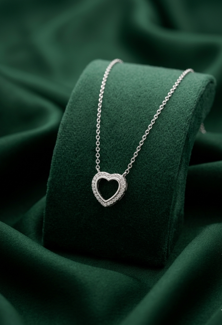 | Product Name | 925 Sterling Silver Open Heart Pendant Necklace With Sparkling Border For Women | |