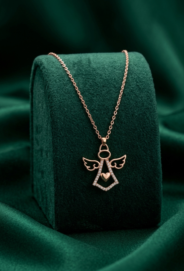 | Product Name | 925 Sterling Silver Rose Gold Plated Angel Heart Pendant Necklace With Crystal Detailing For Women | |