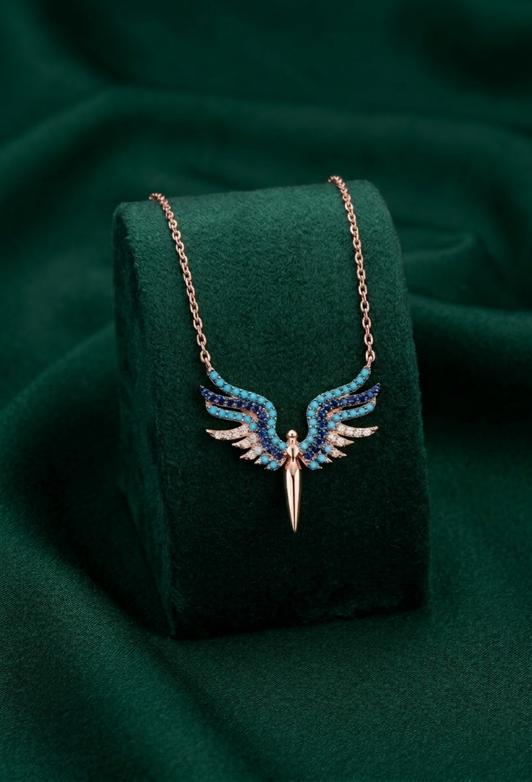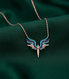 | Product Name | 925 Sterling Silver Rose Gold Plated Angel Wings Pendant Necklace With Blue Stone Embellishments For Women | |