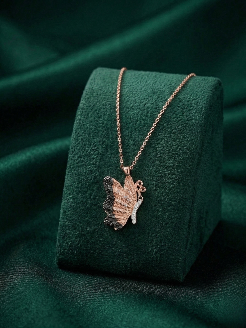 | Product Name | 925 Sterling Silver Rose Gold Plated Butterfly Pendant Necklace With Dual Tone Detailing For Women | |