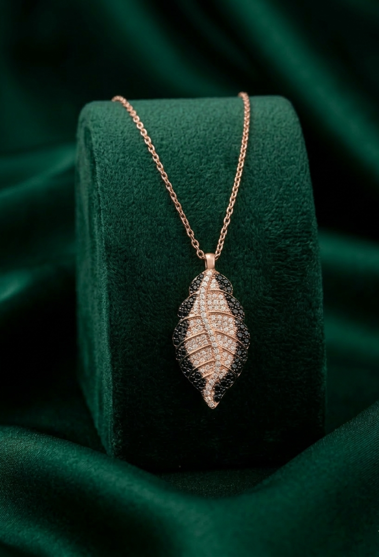 | Product Name | 925 Sterling Silver Rose Gold Plated Leaf Pendant Necklace With Dual Tone Crystal Detailing For Women | |