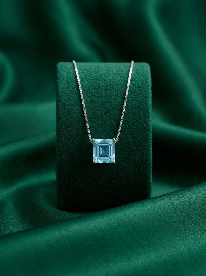 | Product Name | 925 Sterling Silver Square Blue Stone Minimalist Pendant Necklace For Women | |