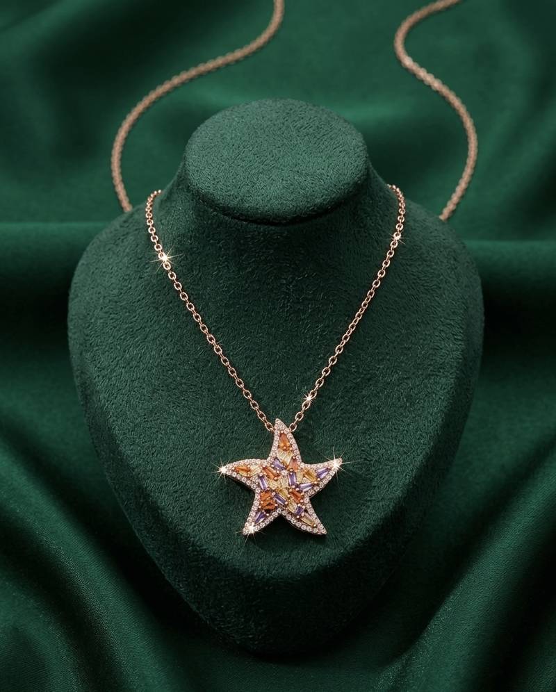 | Product Name | Rose Gold Crystal Star Pendant Necklace In 925 Sterling Silver | Sparkling Designer Statement Necklace For Women | |