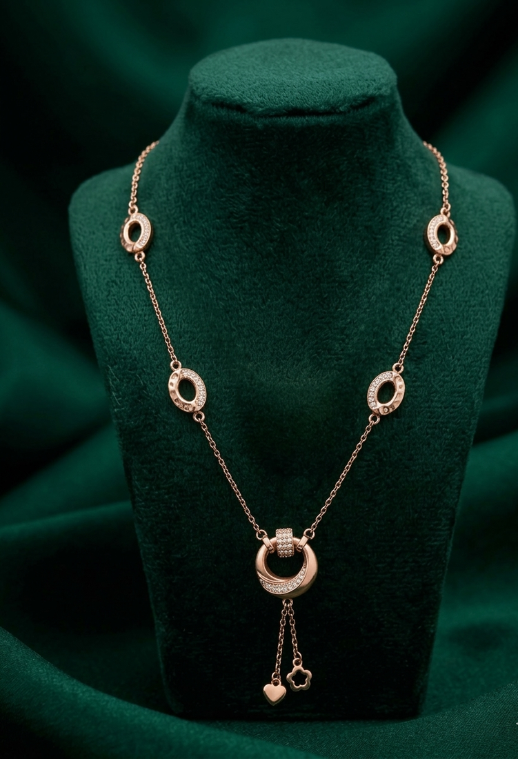 | Product Name | Rose Gold Geometric Link Necklace In 925 Sterling Silver | Elegant Multi Charm Pendant Necklace For Women | |