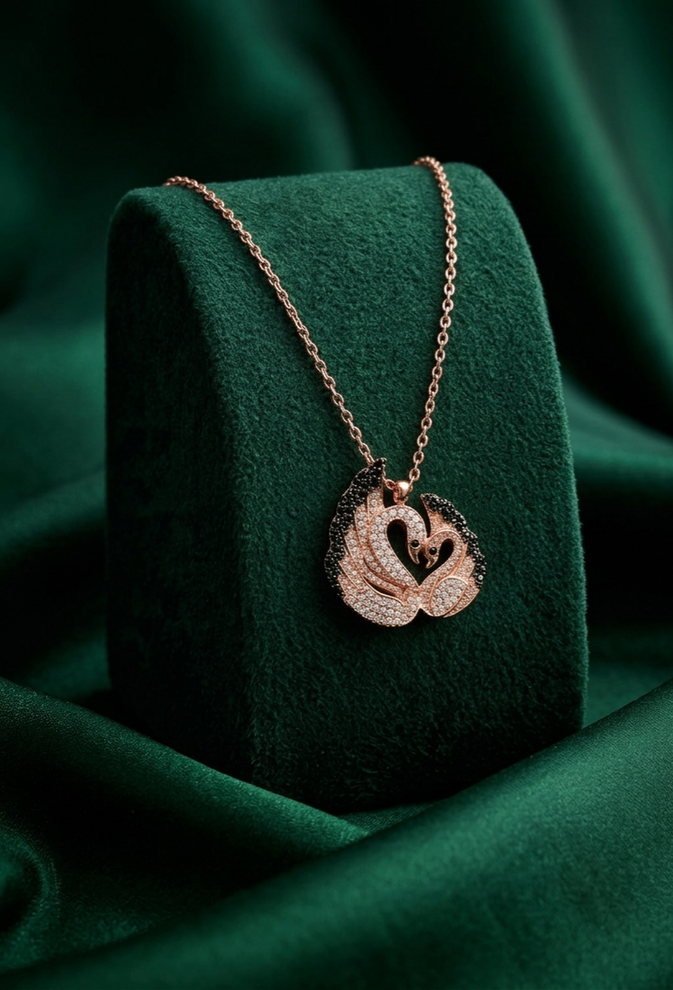 | Product Name | Rose Gold Swan Heart Necklace In 925 Sterling Silver | Elegant Couple Swan Pendant For Women | |