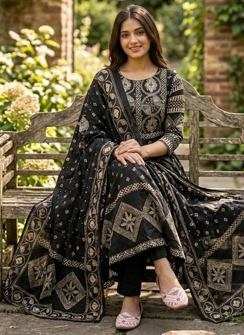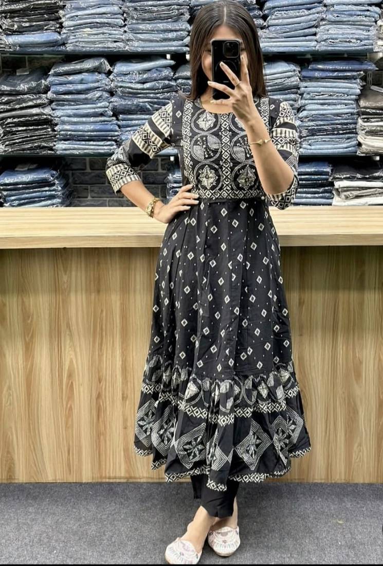 | Product Name | Beautiful Jaipuri A Black A Line Kurta Set | |