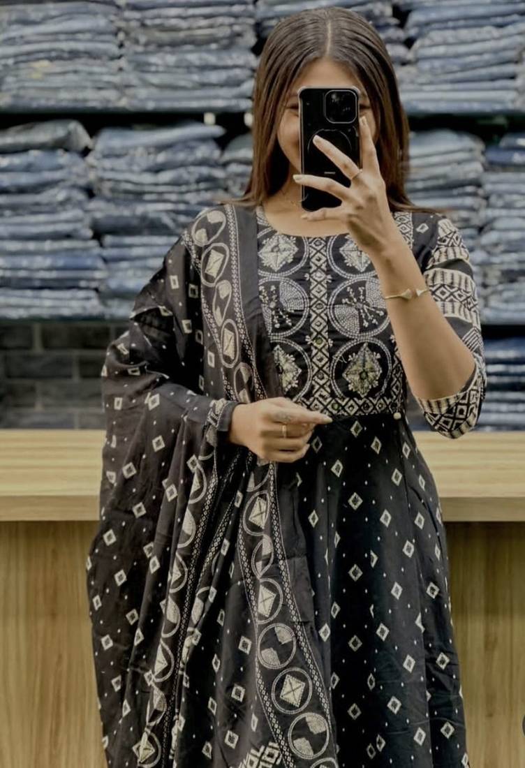 | Product Description | The Black And White Printed Garment In The Selected Region Is A Cotton A Line Kurti Set. This Ethnic Outfit Typically Includes A Flared Anarkali Style Kurta, Matching Palazzo Pants Or Trousers, And A Coordinating Dupatta. The Specific Design Features Intricate Geometric And Ethnic Motifs, A Round Neckline, And Three Quarter Sleeves. Some Versions Of This Set Include Sequence Embroidery Work On The Yoke And Designer Sleeves. |