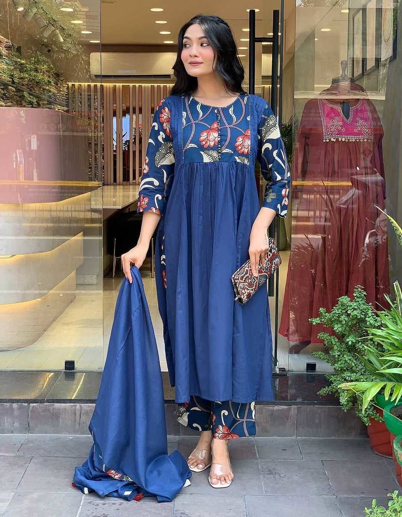 | Product Name | Beautiful Jaipuri A Blue Colored Cotton Anarkali Kurta Set With Printed Trousers And A Solid Blue Dupatta. | |