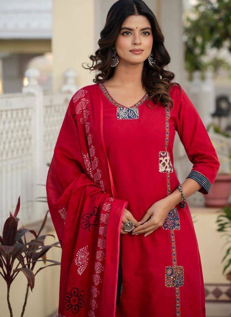 | Product Name | Beautiful Jaipuri A Red Cotton Straight Kurta Set Adorned With Traditional Patch Work And Hand Katha Work. | |