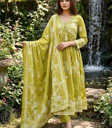 Beautiful jaipuri an anarkali neon mehandi green kurti set of mul cotton.