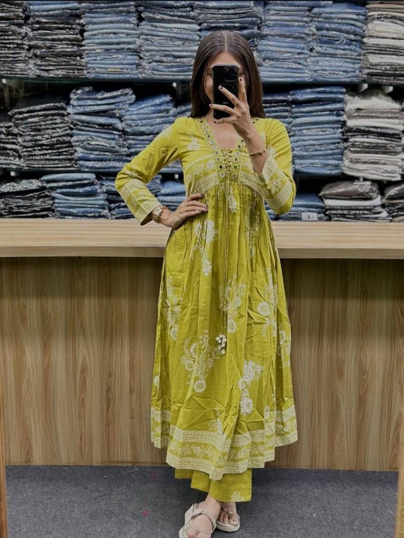 | Product Name | Beautiful Jaipuri An Anarkali Neon Mehandi Green Kurti Set Of Mul Cotton. | |