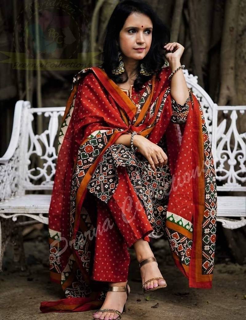 Beautiful jaipuri an embroidered patola black red print kurta set,