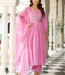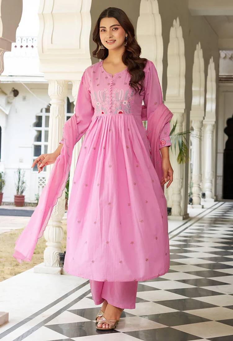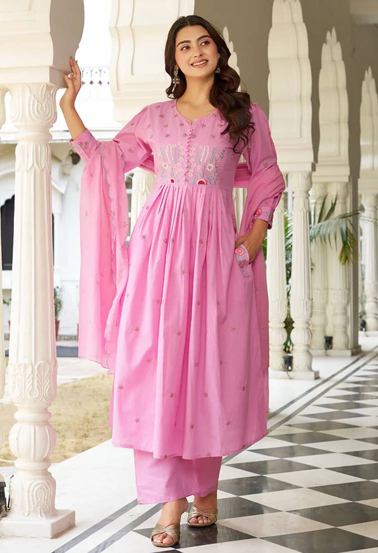 Beautiful jaipuri elegant embroidered anarkali pink kurta set with dupatta