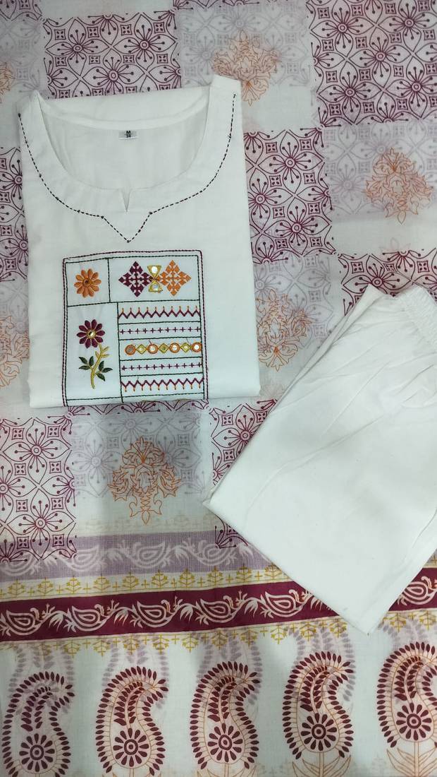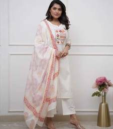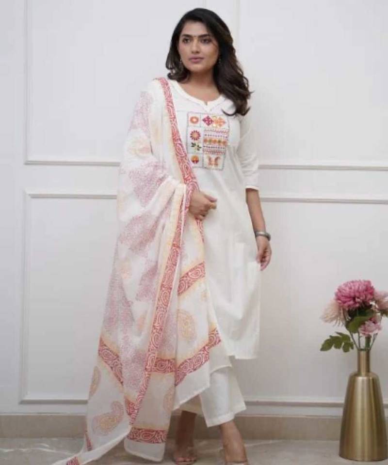 | Product Name | Beautiful Jaipuri White Straight Embroidered Kurta Set With Pants And A Dupatta. | |
