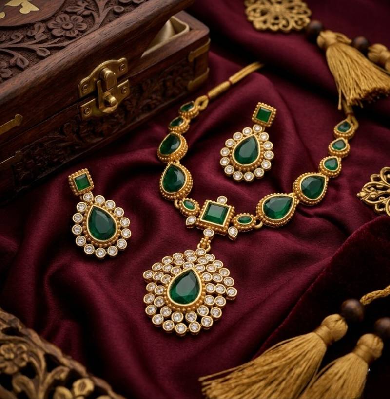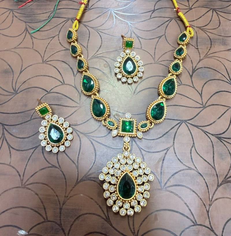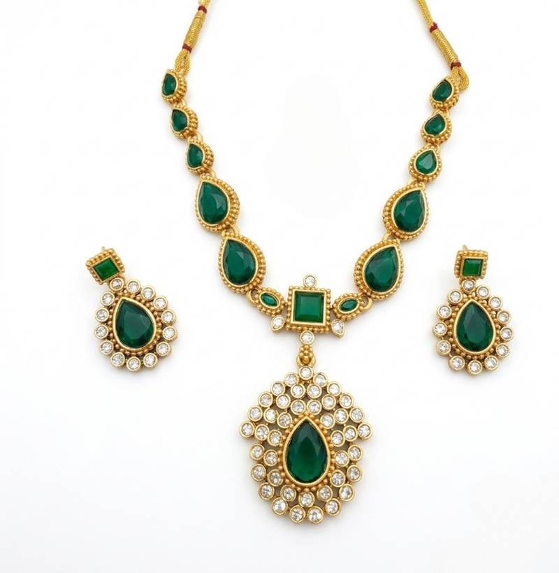| Product Name | Elegant Emerald Green & Gold Plated Handcrafted Indian Bridal Jewelry Set Necklace / & Earrings | |