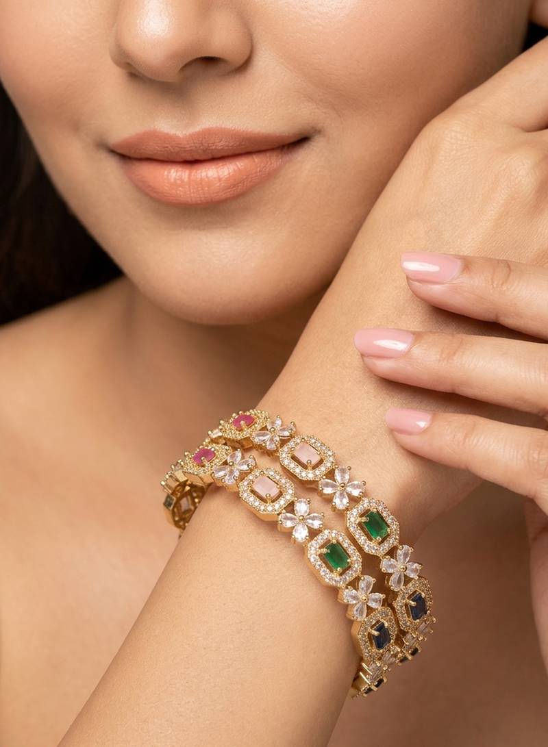 | Product Name | Exquisite Emerald & Diamond Gold Plated Floral Kada Bangles Handcrafted Ethnic Jewelry For Weddings | |