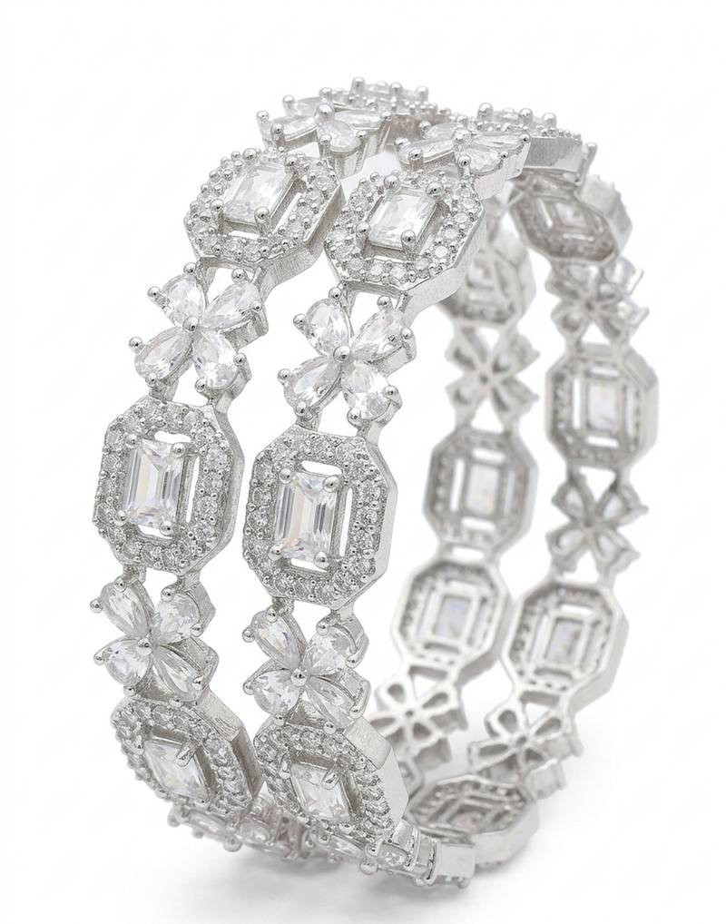 | Product Name | Exquisite Emerald & Diamond Silver Plated Floral Kada Bangles Handcrafted Ethnic Jewelry For Weddings | |
