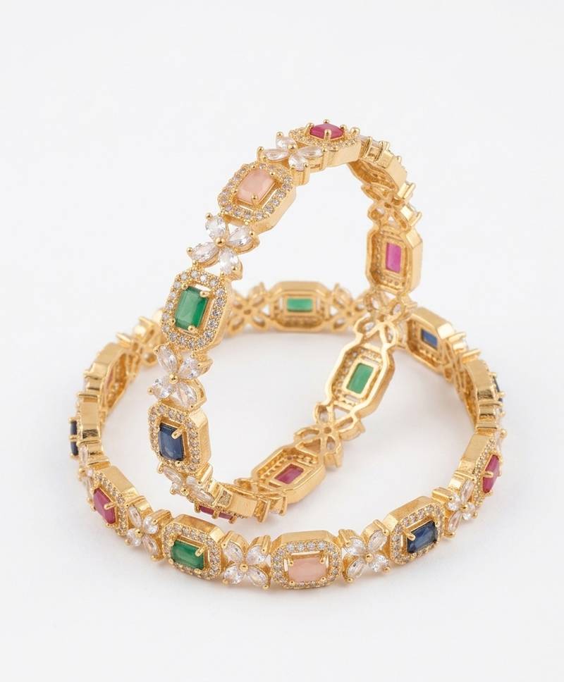 | Product Name | Exquisite Emerald & Diamond Gold Plated Floral Kada Bangles Handcrafted Ethnic Jewelry For Weddings | |