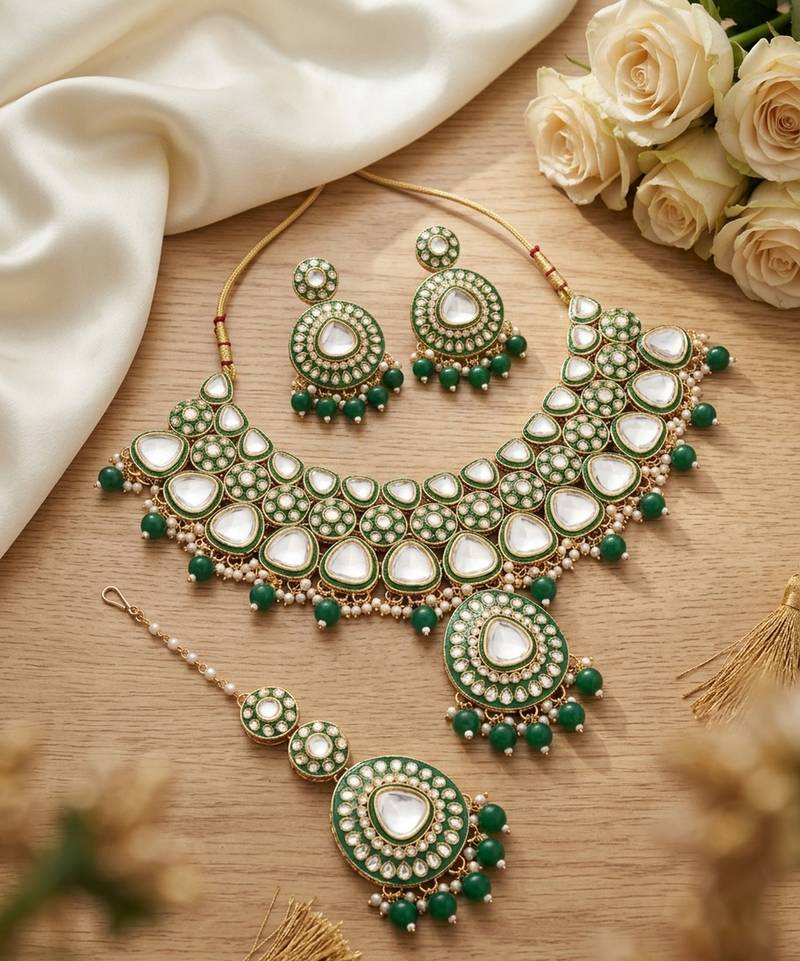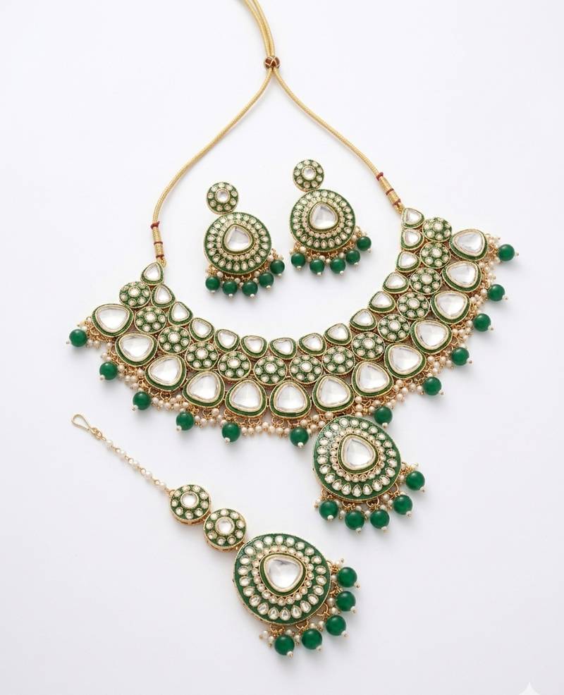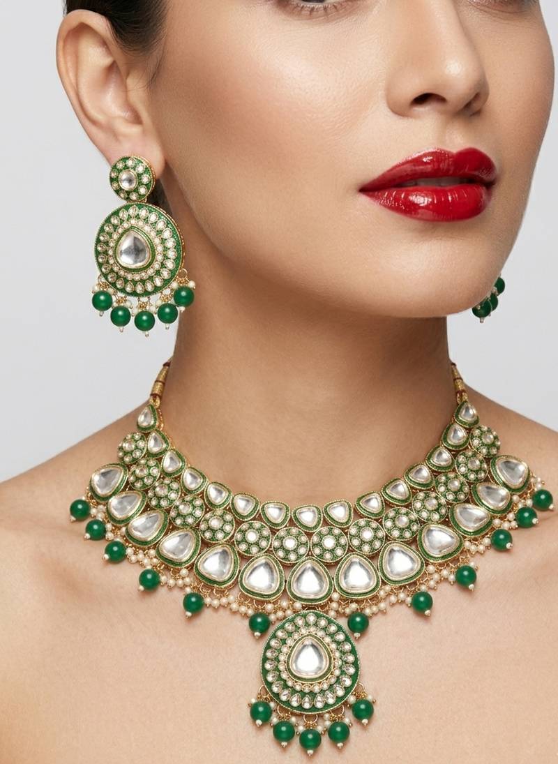| Product Name | Handcrafted Kundan Choker Necklace / Set | Gold Plated | Emerald Green | Wedding & Festival Jewelry | |