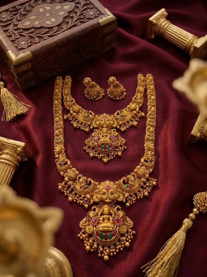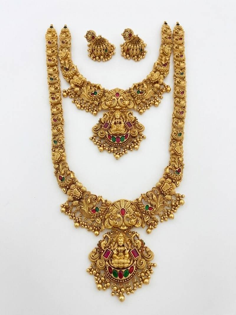 | Product Name | Handcrafted Lakshmi Temple Jewellery Set Traditional Gold Plated Long & Short Necklace / With Jhumkas | |