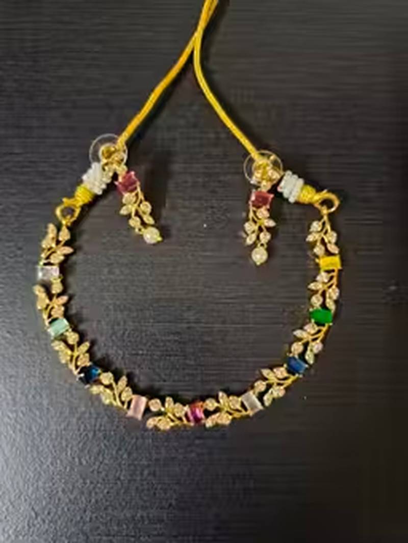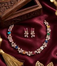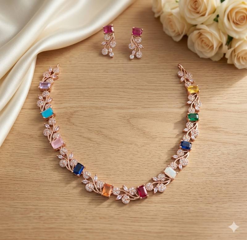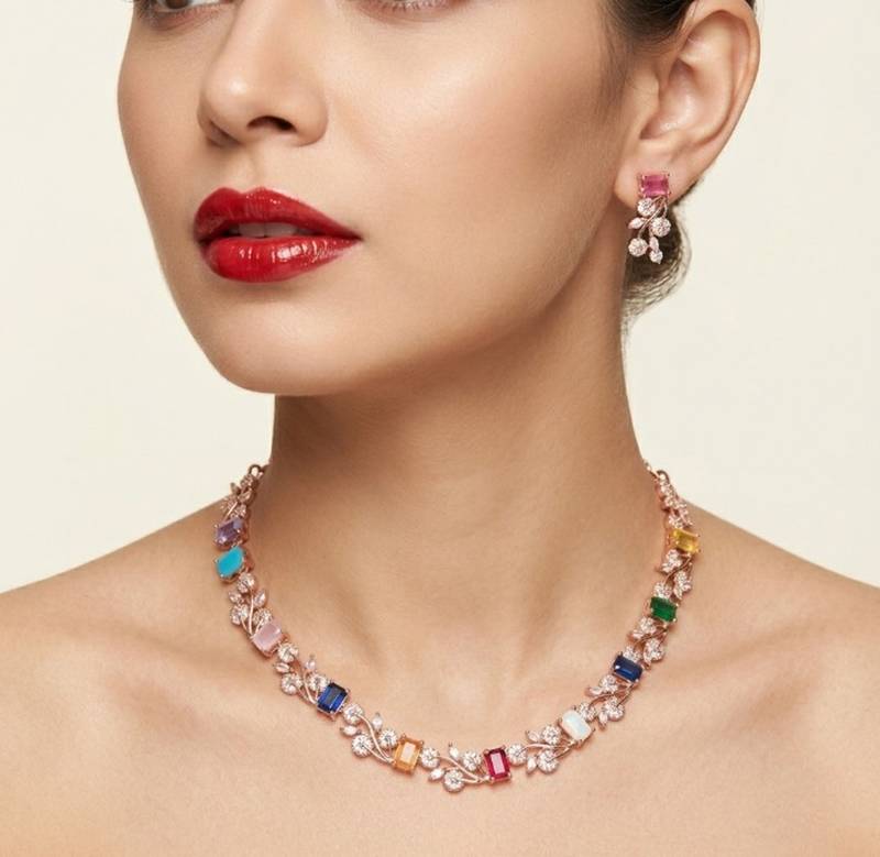| Product Name | Multi Color Gemstone Floral Necklace / Set Handcrafted 18k Rose Gold Plated Jewellery For Weddings & Parties | |