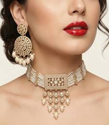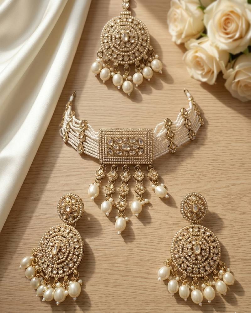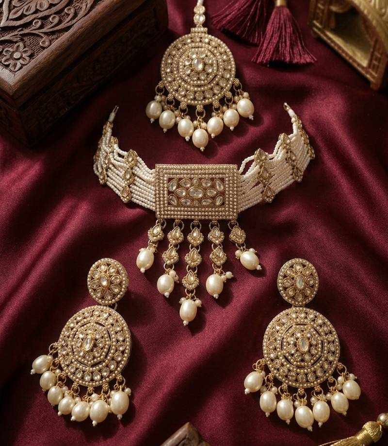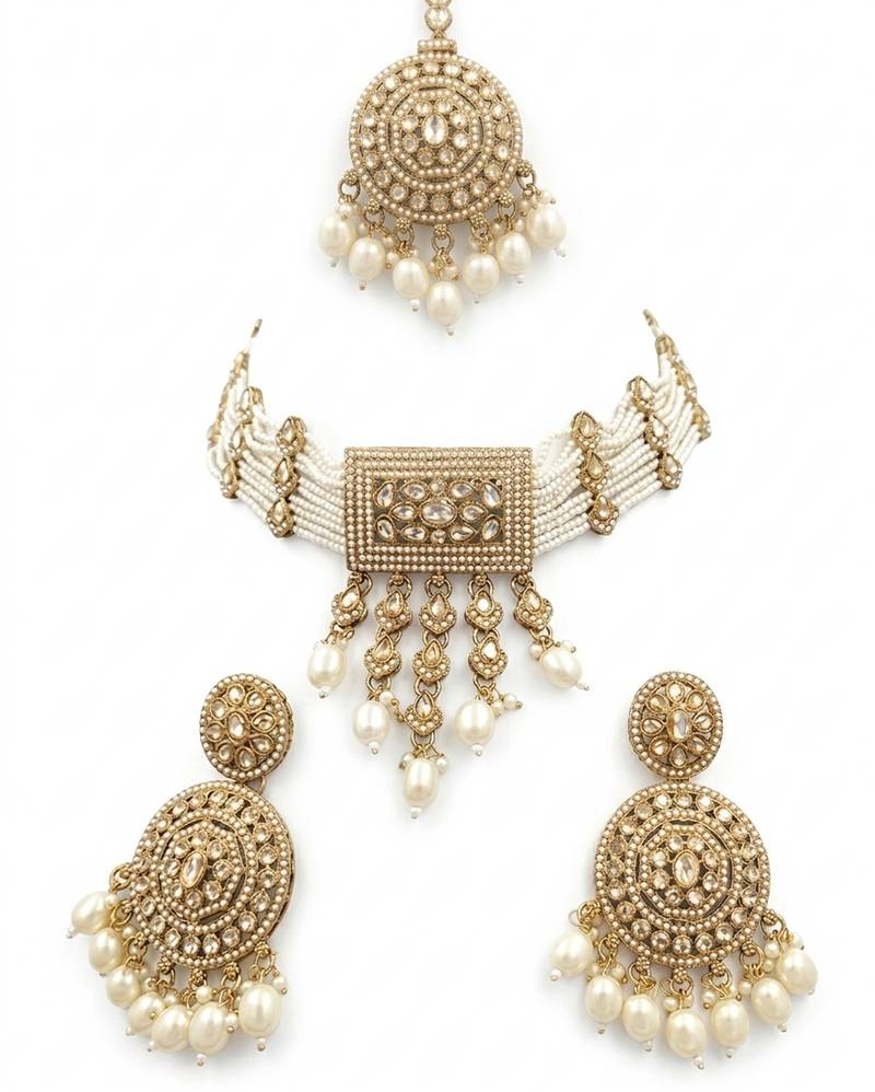 | Product Name | Traditional Gold Plated Pearl Choker Necklace / Set With Earrings & Mangtika Elegant Ethnic Bridal Jewellery | |