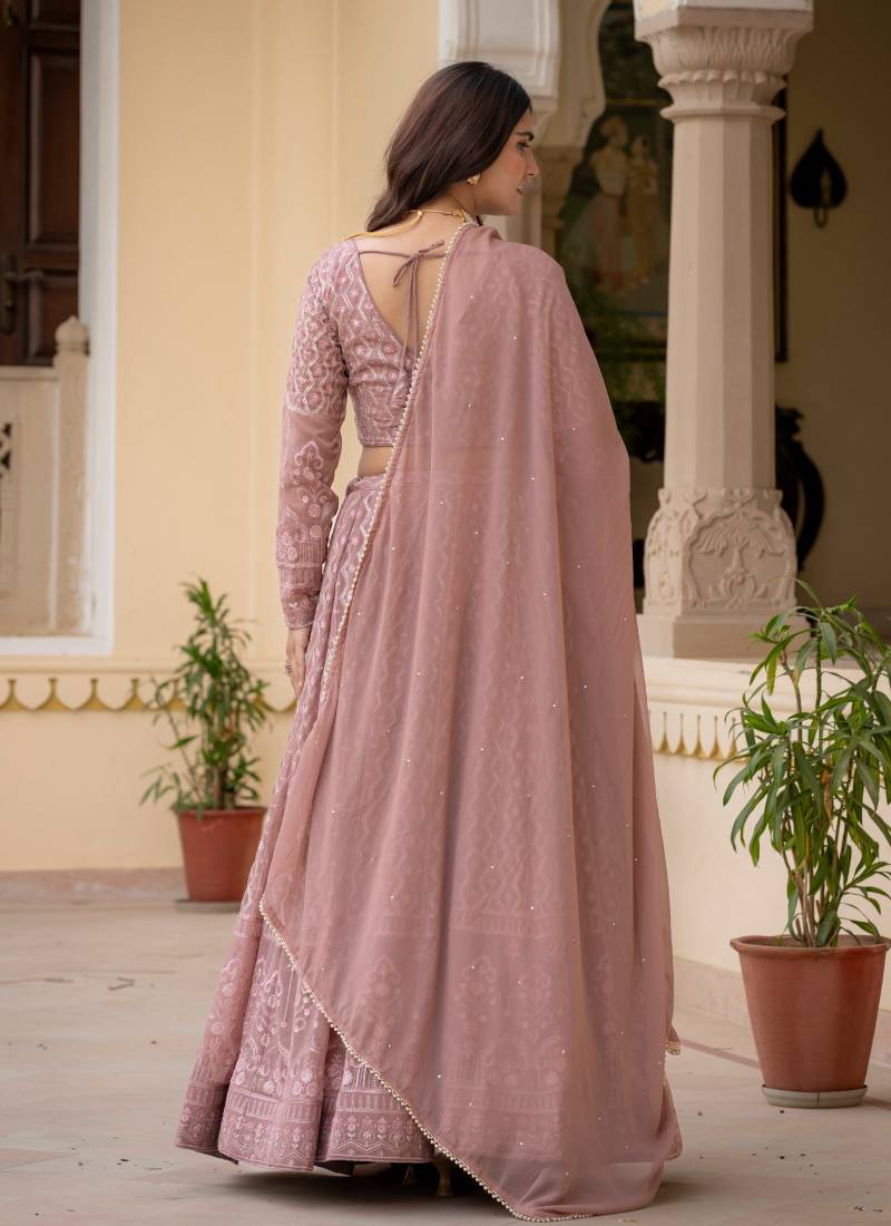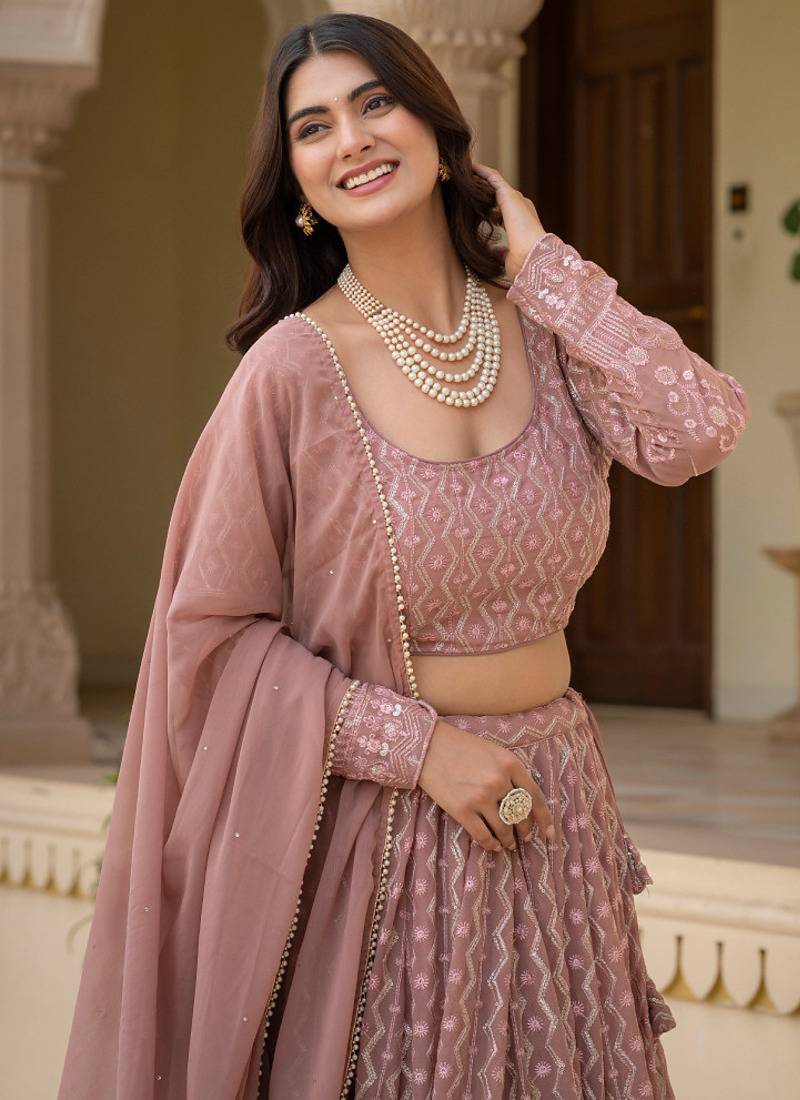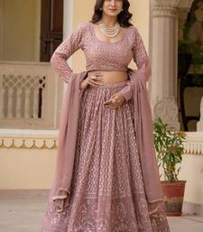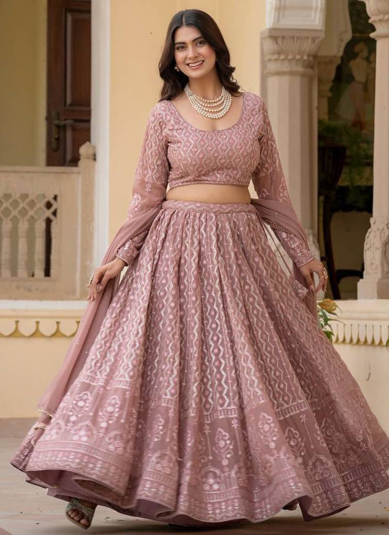 Pink zari sequence embroidery work georgette semi stiched lehenga choli