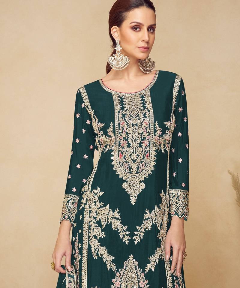 | Product Name | Green Embroidered Chinon Semi Stitched Palazzo Style Salwar Suit | |